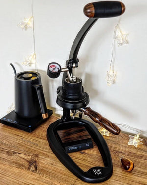 Flair 58 ass eng lëschteg manuell Espressomaschinn, wou Dir voll Kontroll iwwer all Variablen hutt, déi beim Espresso-Brühen involvéiert sinn.