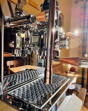 - Duebelkessel-Design: D'Maschinn huet zwee onofhängeg Kesselen aus Edelstol (0,8 L an 2,3 L) déi individuell Temperaturjustéierung fir béid Braugrupp an Dampkessel erlaben, wat optimal Brauen an Dampproduktioun garantéiert.