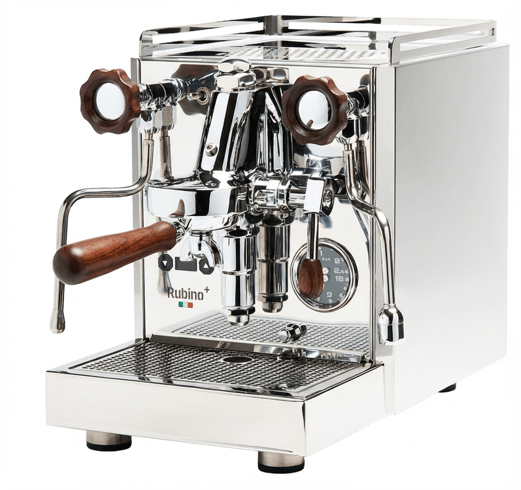 Quick Mill Rubino+ ass eng professionell Espressomaschinn fir doheem, déi klassesch italieenesch Handwierkskonscht mat moderner Funktionalitéit kombinéiert. Mat senger E61 Brühgrupp a Wärmetauschersystem liwwert de Rubino+ stabil Temperaturen an aussergewéinlechen Espresso, Taass fir Taass.