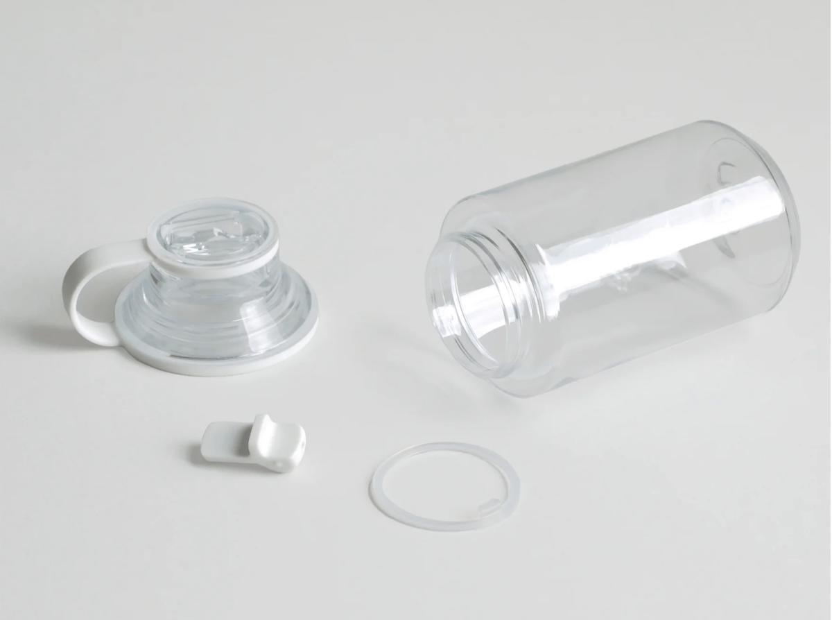 - Fläsch an Deckel aus Copolyester, déi bis zu 80°C standhalen