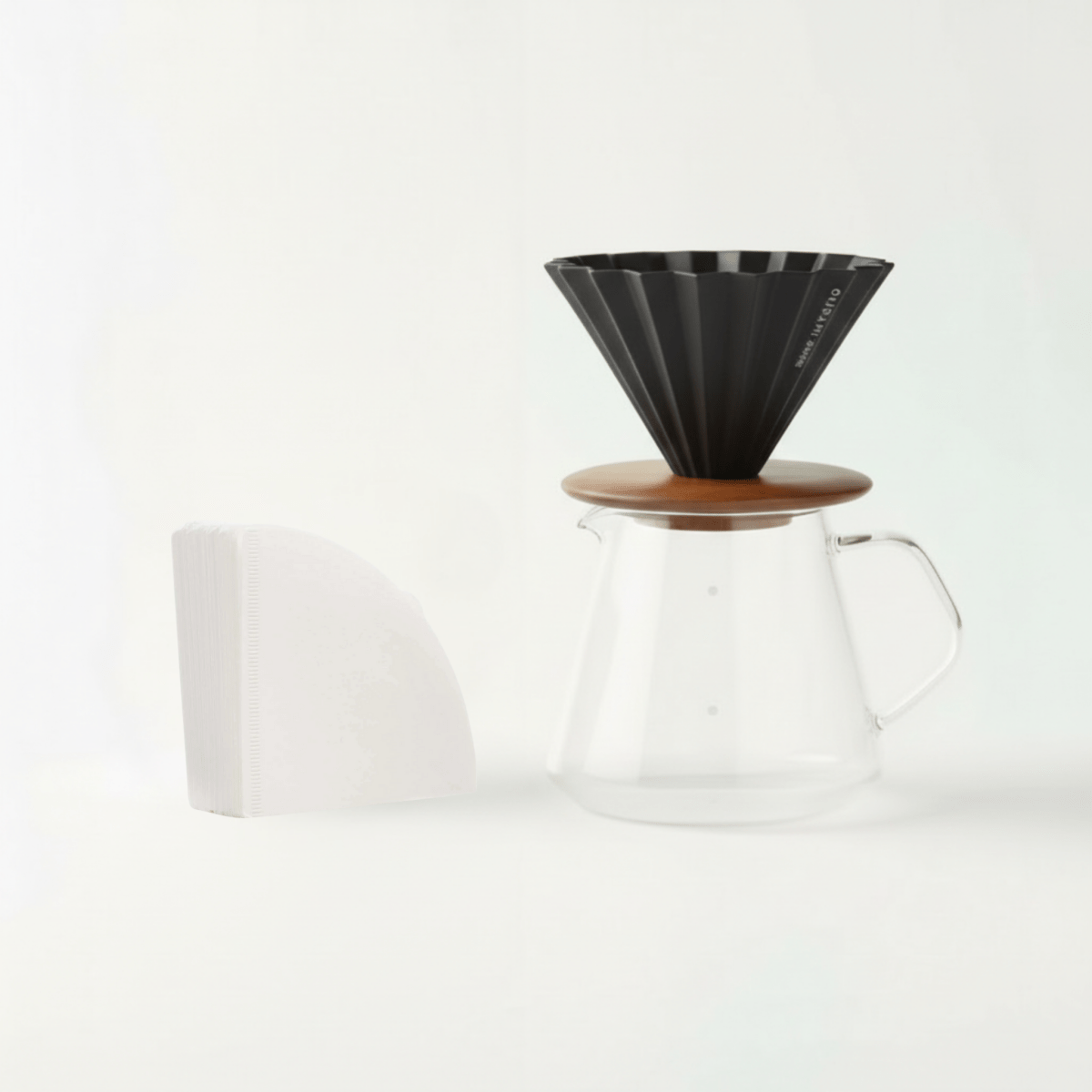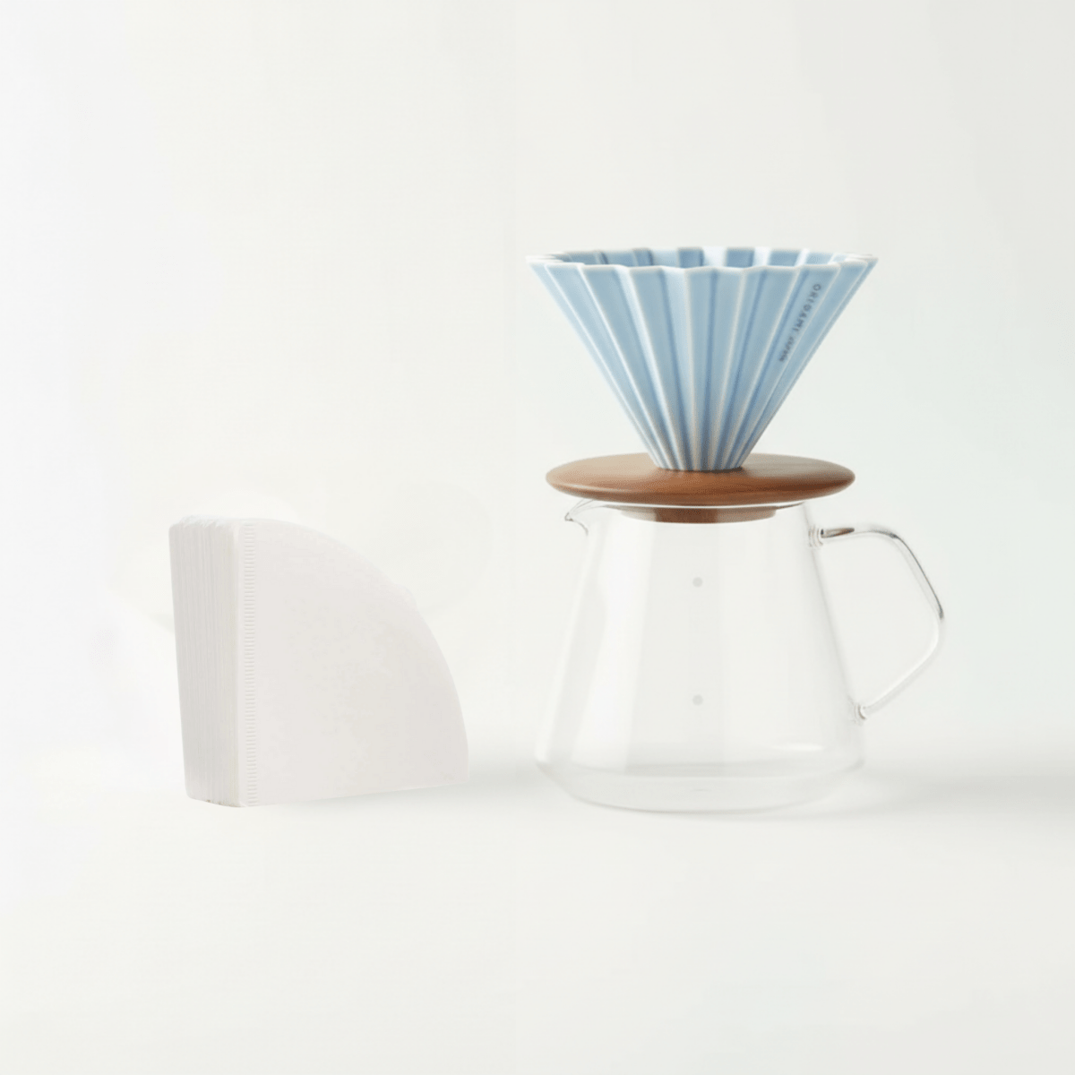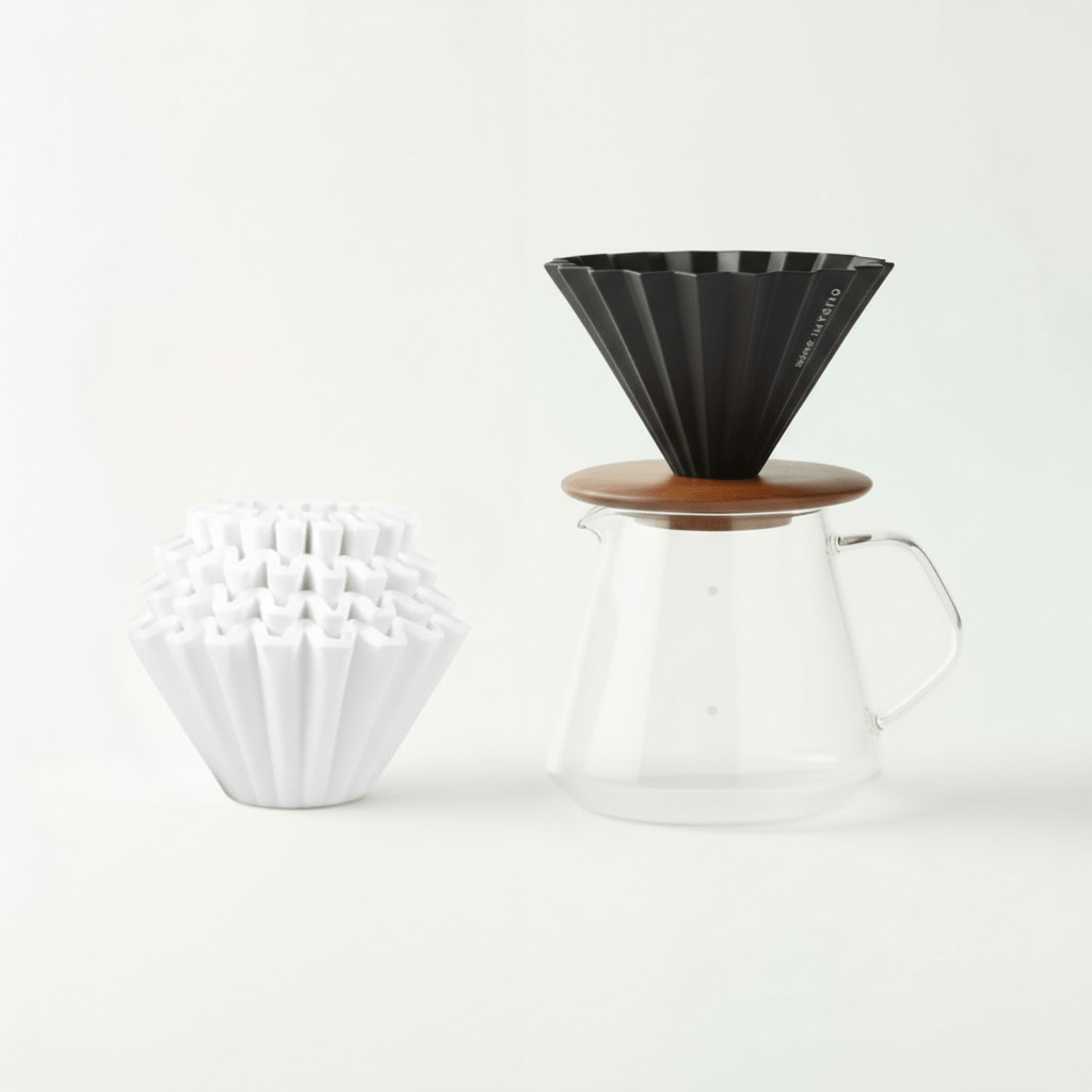 Entdeckt déi japanesch Konscht vum Iwwergossen mat dësem komplette Set vun Origami . Alles wat Dir braucht fir aussergewéinleche Kaffi mat Präzisioun an Eleganz ze brauen - vum dripper iwwer d'Kanne an de Filter.