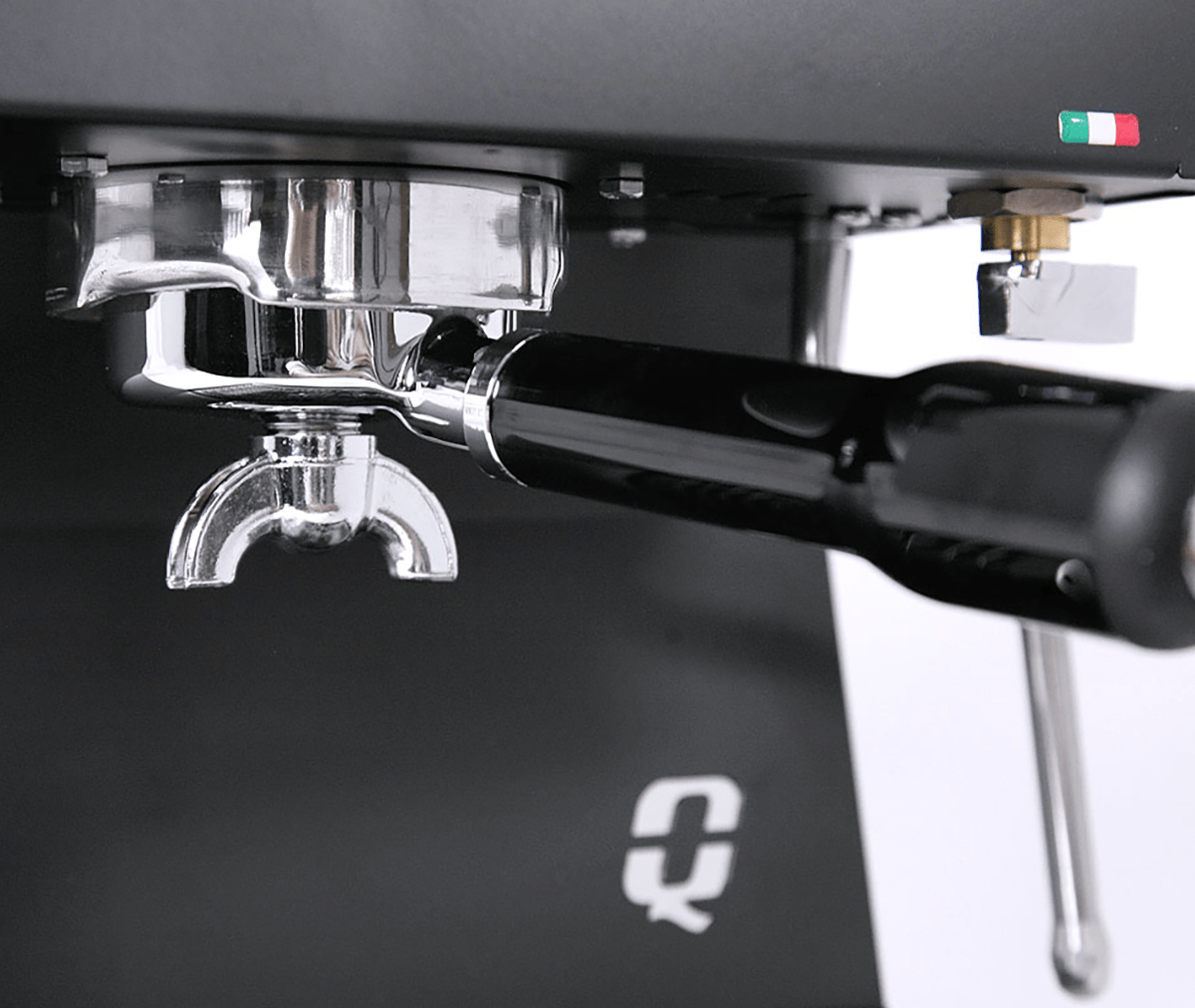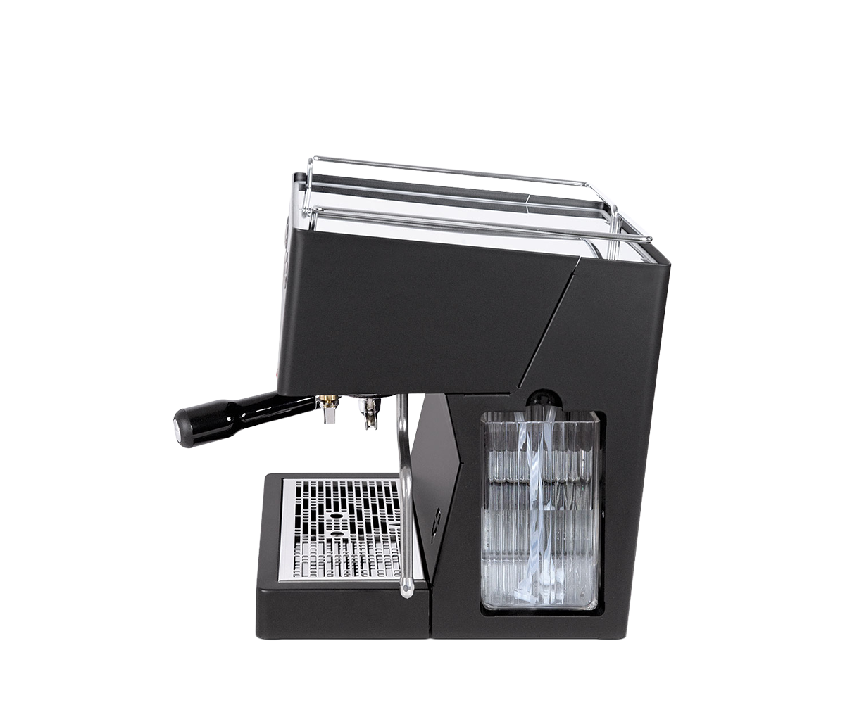 Material: Edelstol; verfügbar a Stol, matt schwaarz a wäiss; Quick Mill Brühgrupp mat O-Ring; Anti-Verbrennungsdampfstab
