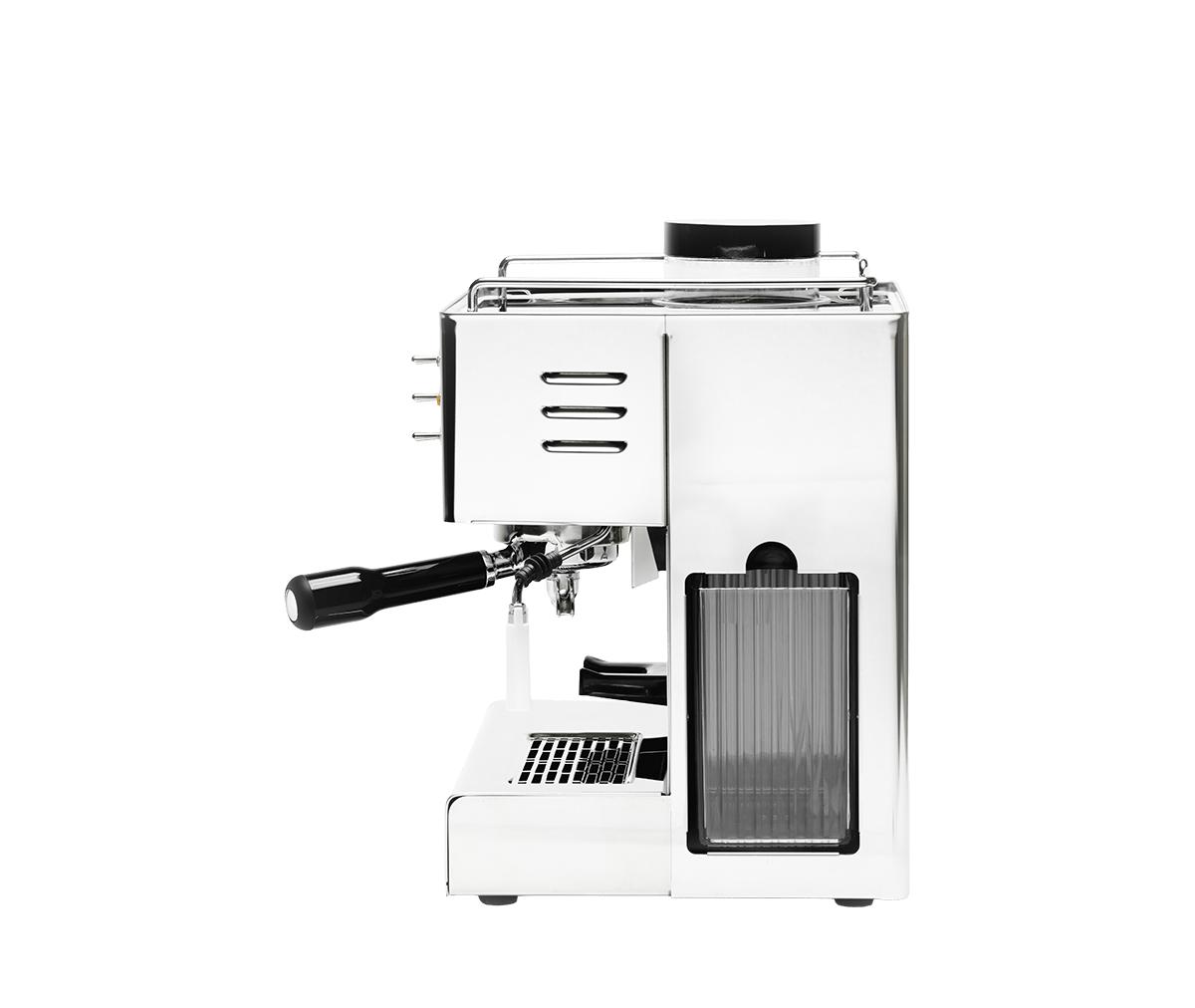 D'Maschinn gëtt mat klassesche Hebelbedienungen, kloeren Indikatorluuchten an enger integréierter Stamper gesteiert. Den 1,8 Liter Säitentank mécht d'Fëllen einfach a praktesch.
