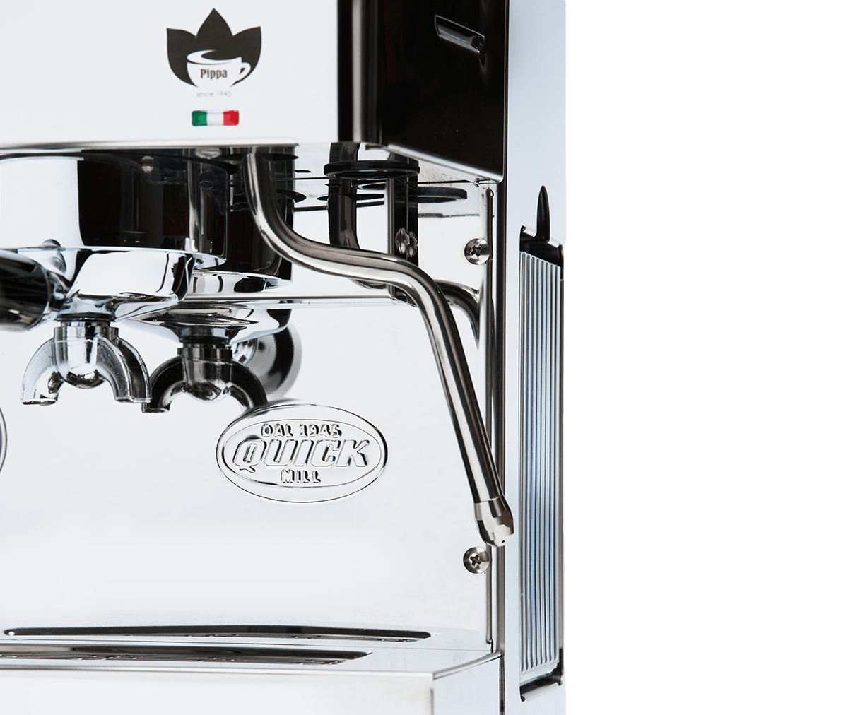 Quick Mill Pippa ass eng stilvoll a kompakt Espressomaschinn mat engem Kessel, déi eng beandrockend Leeschtung an engem klenge Format liwwert. Mat senger handgebauter italieenescher Konstruktioun, sengem robuste Messingkessel an engem kloere Manometer hutt Dir déi voll Kontroll iwwer Är Extraktioun - perfekt fir déi, déi eescht mam Espresso ëmgoe wëllen. De professionelle Dampfstaaf produzéiert e seidige Mikroschaum fir Cappuccinoen a Lattes, während d'Vibratiounspompel mat reduzéiertem Geräisch d'Brühen roueg a gemittlech mécht. Eng elegant Maschinn, déi Ären Alldag mat engem konsequenten, gutt ausgeglachene Espresso ophieft.
