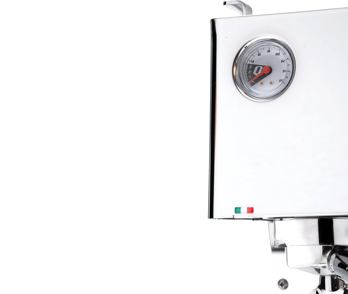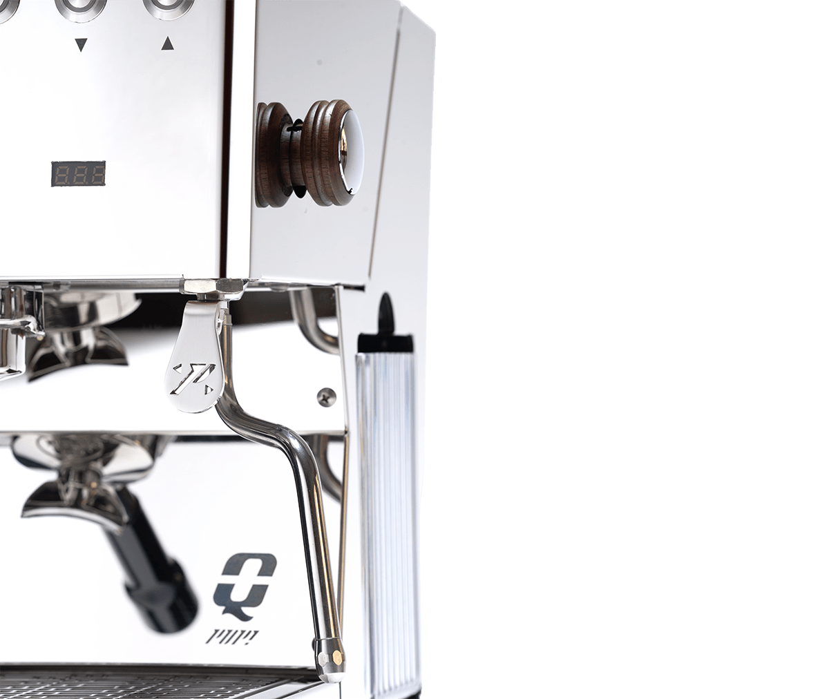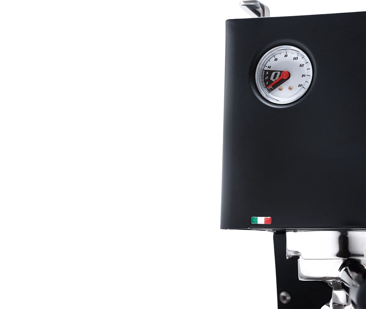 Material: Voll aus Edelstol; a Stol oder mattschwaarz verfügbar; Quick Mill Brühgrupp mat O-Ring; Anti-Verbrennungsdampfstaaf