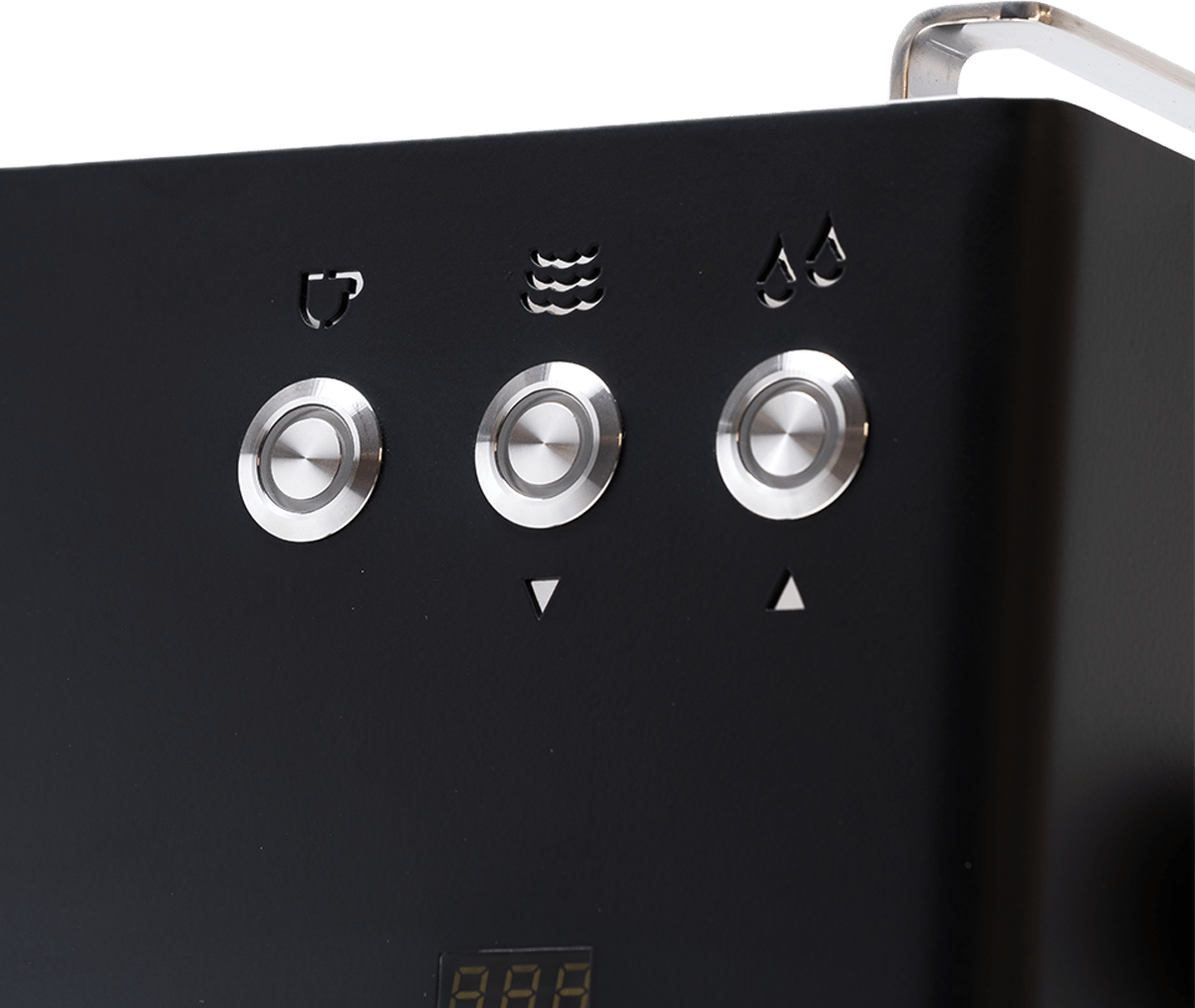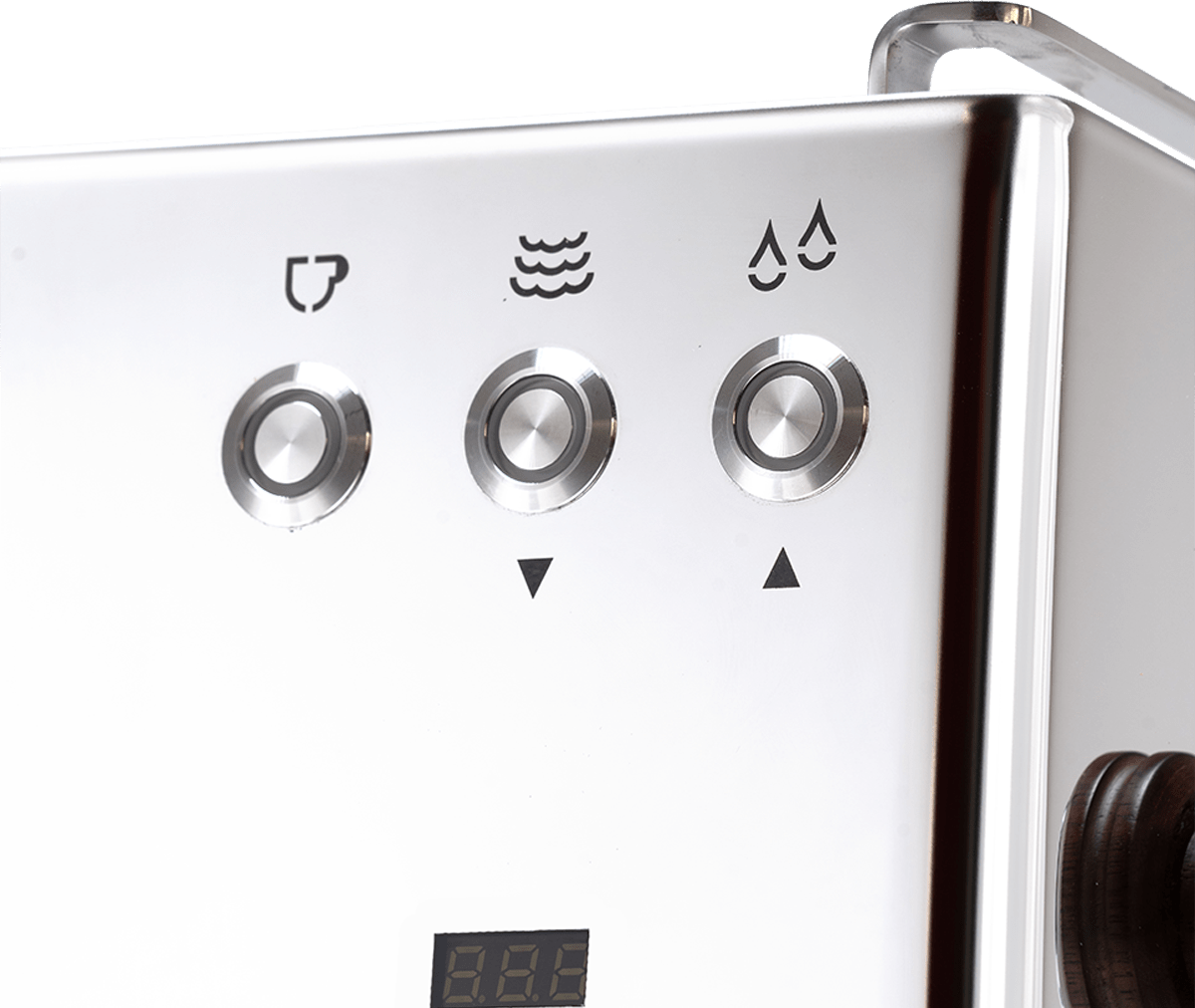 Kontrollen: PID; Display (Temperatur, Sprëtztimer, Astellungen); programméierbar Virinfusioun, Eco a Standby; Pompeldrockmesser 0–16 bar; Profilventil; vandalsécher hannerluuchte Knäppercher; On/Off Schalter