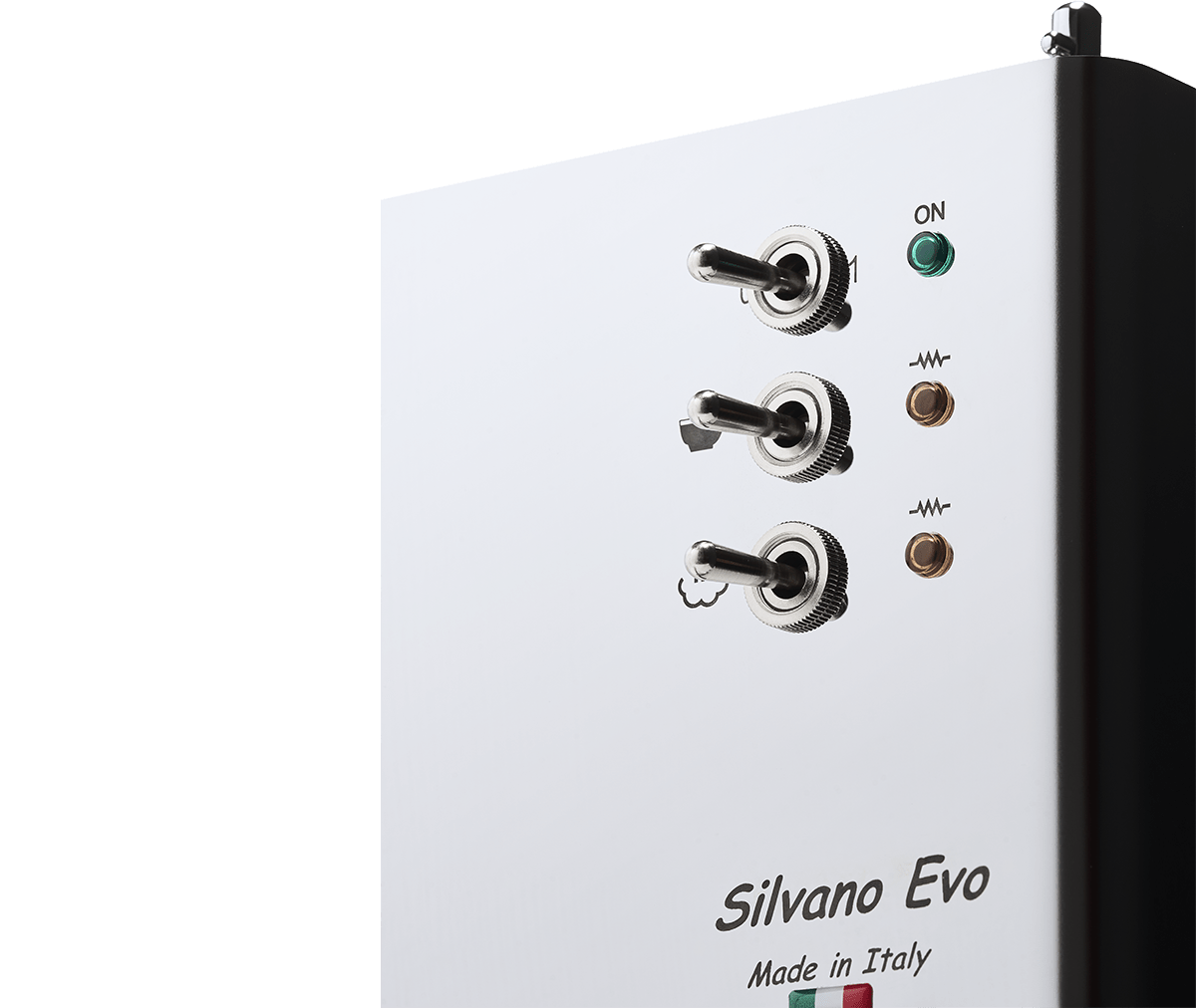 Kontrollen: PID; Pompeldrockmesser 0–16 bar; Display (Temperatur, Sprëtztimer); Expansiounsventil; Kontrollluuchten; On/Off-Schalter