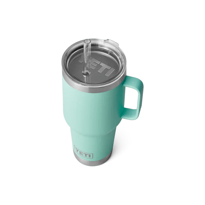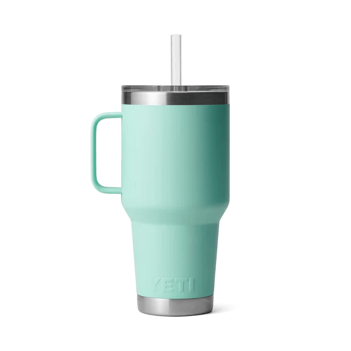 D'YETI Rambler Stréibecher 1 Liter an der Faarf Seafoam ass déi perfekt Becher fir déi, déi de ganzen Dag äiskal Gedrénks wëllen, egal ob op engem Abenteuer oder doheem. D'Becher ass mat engem wiederverwendbare Stréi an Deckel ausgestatt, déi d'Gedrénks sécher a leckfräi halen.