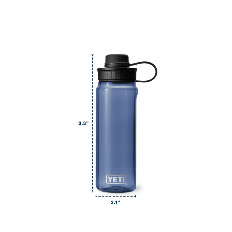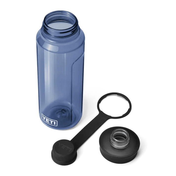 D'YETI Yonder Tether Waasserfläsch 1 Liter a Marineblo ass eng liicht an haltbar Waasserfläsch, déi fir aktiv Abenteuer entworf ass. Si ass aus 50% recycléiertem Plastik (ausser dem Deckel) a komplett BPA-fräi gemaach, sou datt se eng ëmweltfrëndlech Wiel ass fir déi, déi liicht reese wëllen, ouni Kompromësser ze maachen.